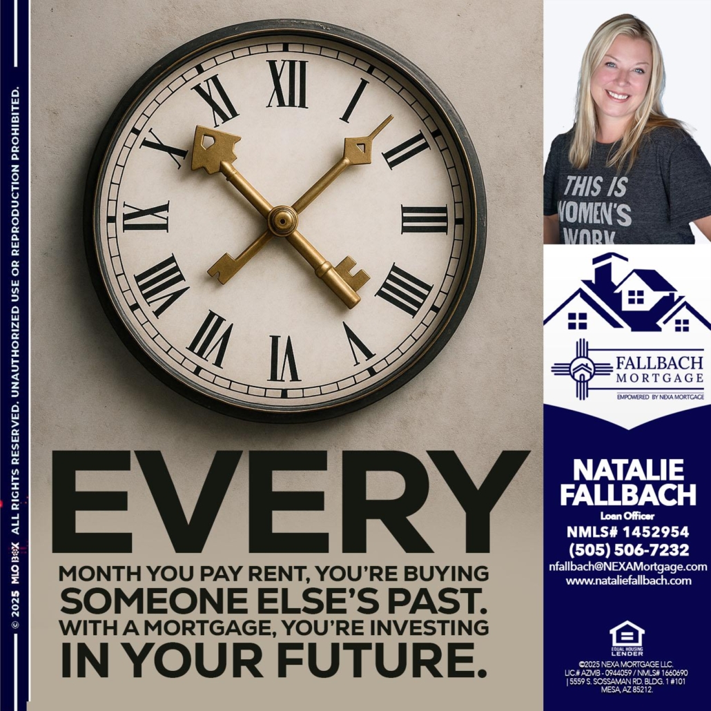 EVERY MONTH - Natalie Fallbach -Mortgage Loan OfficerHi, my name is Natalie Fallbach. I’m a Loan Officer with NEXA Mortgage LLC., offering personalized mortgage solutions, fast customized quotes, great rates and service with integrity.
