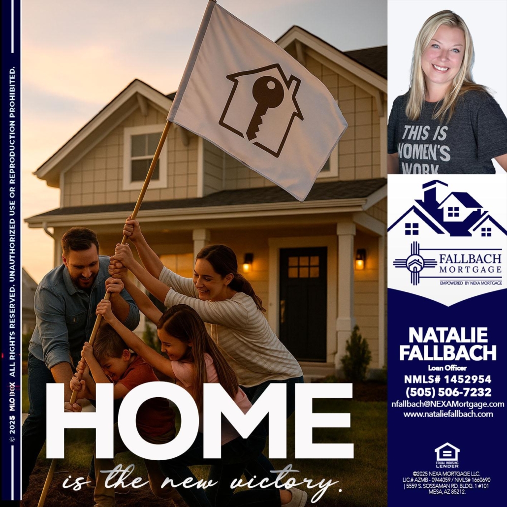 HOME IS - Natalie Fallbach -Mortgage Loan OfficerHi, my name is Natalie Fallbach. I’m a Loan Officer with NEXA Mortgage LLC., offering personalized mortgage solutions, fast customized quotes, great rates and service with integrity.