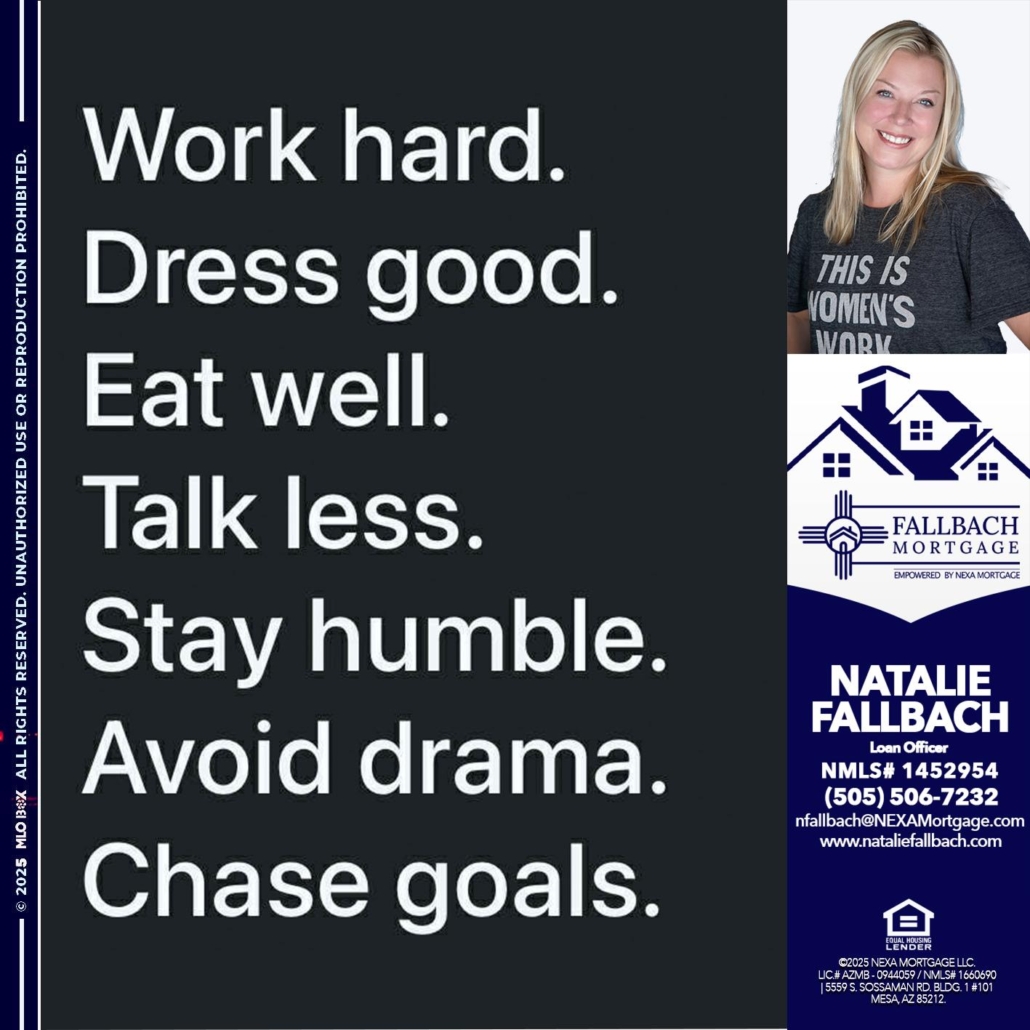 work hard - Natalie Fallbach -Mortgage Loan OfficerHi, my name is Natalie Fallbach. I’m a Loan Officer with NEXA Mortgage LLC., offering personalized mortgage solutions, fast customized quotes, great rates and service with integrity.